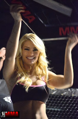 Hannah made her ring carding debut as a BAMMA Belle this past Saturday for BAMMA UK 14. Based on her excitement level and calling this her favorite job to date we assume we will be seeing more of Hannah at MMA events soon. Although she still hasn’t picked a favorite MMA fighter she said Paul “Semtex” Daley took her breath away with his knock out of Romario Manoel da Silva at BAMMA 14 UK.